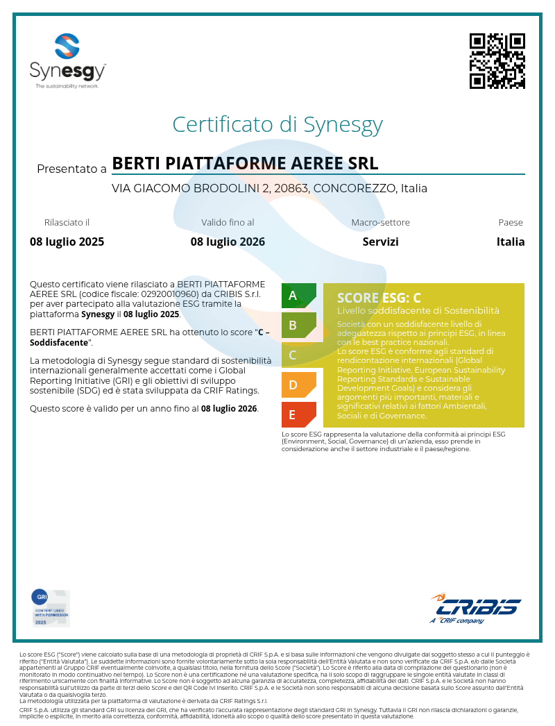 Spett.Le BERTI PIATTAFORME AEREE,